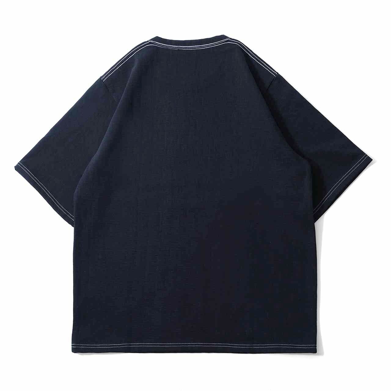 MACKERZのTシャツはヴィンテージの吊り編み機で編まれています。生地の密度を詰めて編みたてた11ozの頑丈な厚生地が特徴。一般的なTシャツは5〜6ozのため、約2倍の厚さでインナーや肌が透ける心配もありません。襟(ネック)やポケット部分もリブでなく、同じ生地で伸びにくいようになっています。