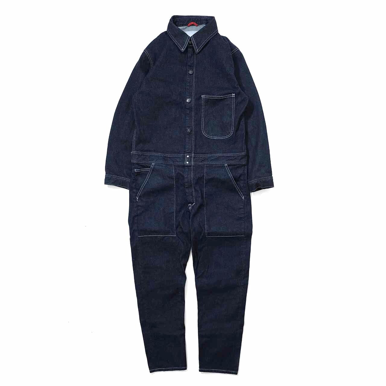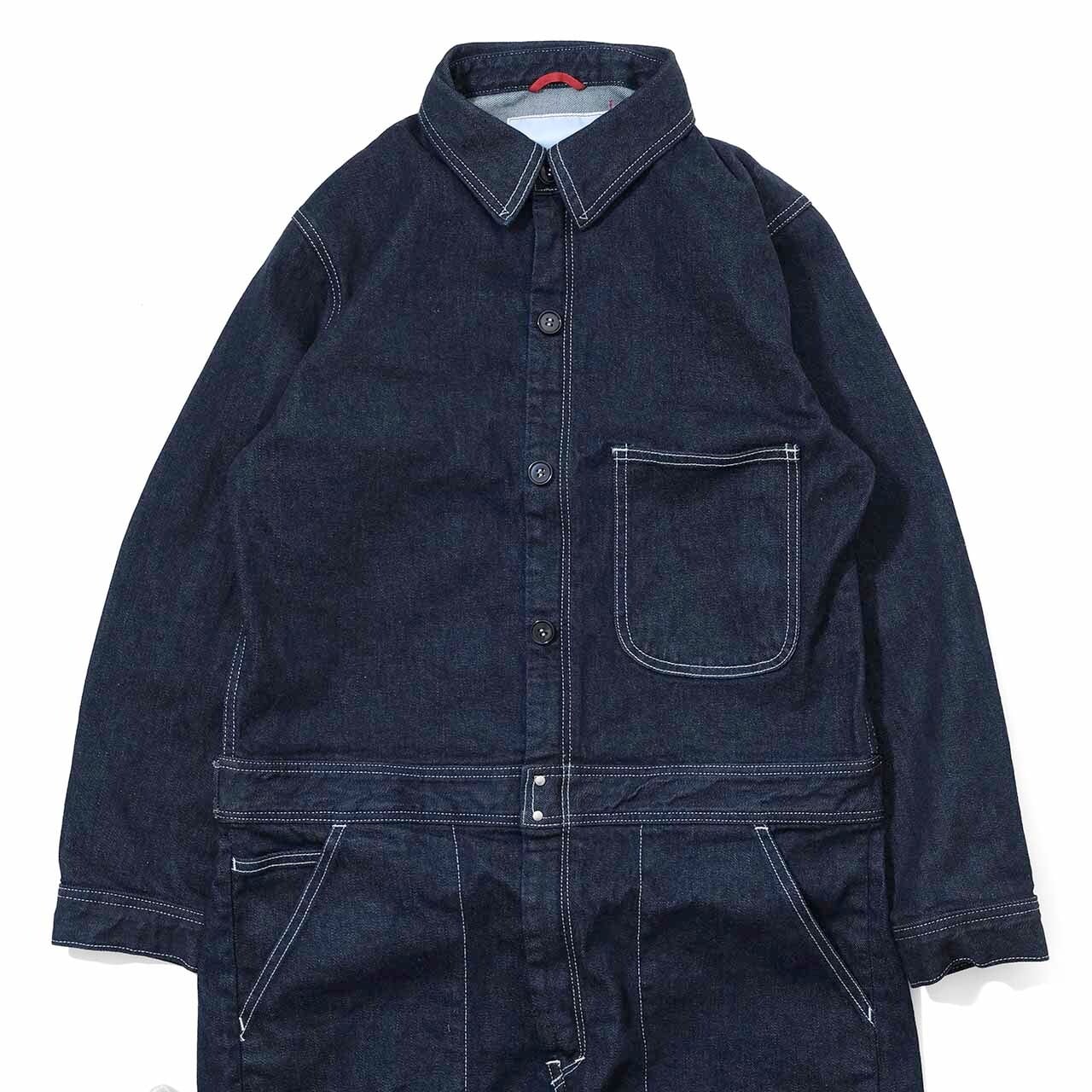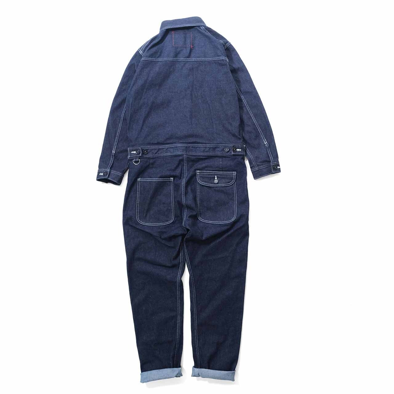 MACKERZの定番アイテム、ストレッチが効いた12oz セルヴィッチ・デニムのALL IN ONEです。送料は無料です。