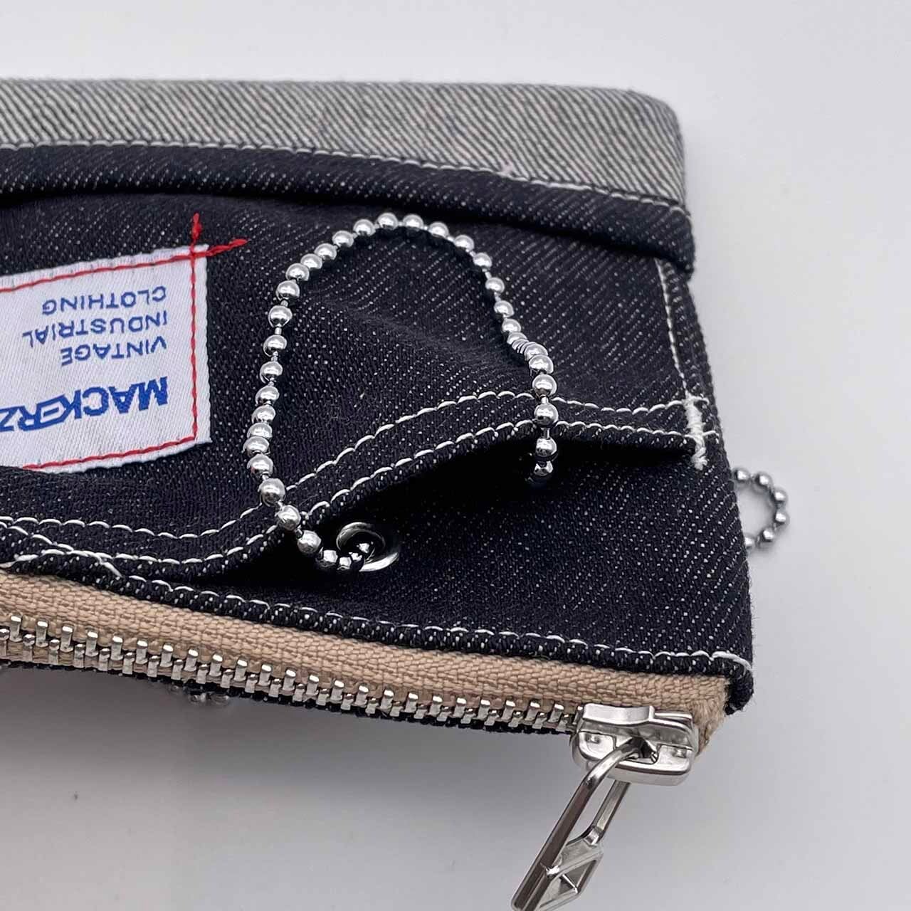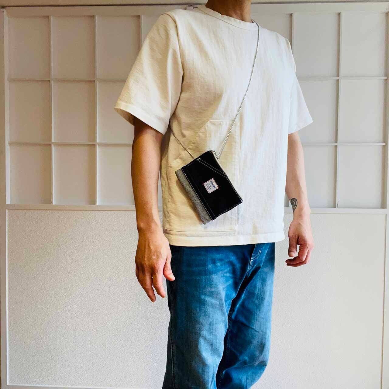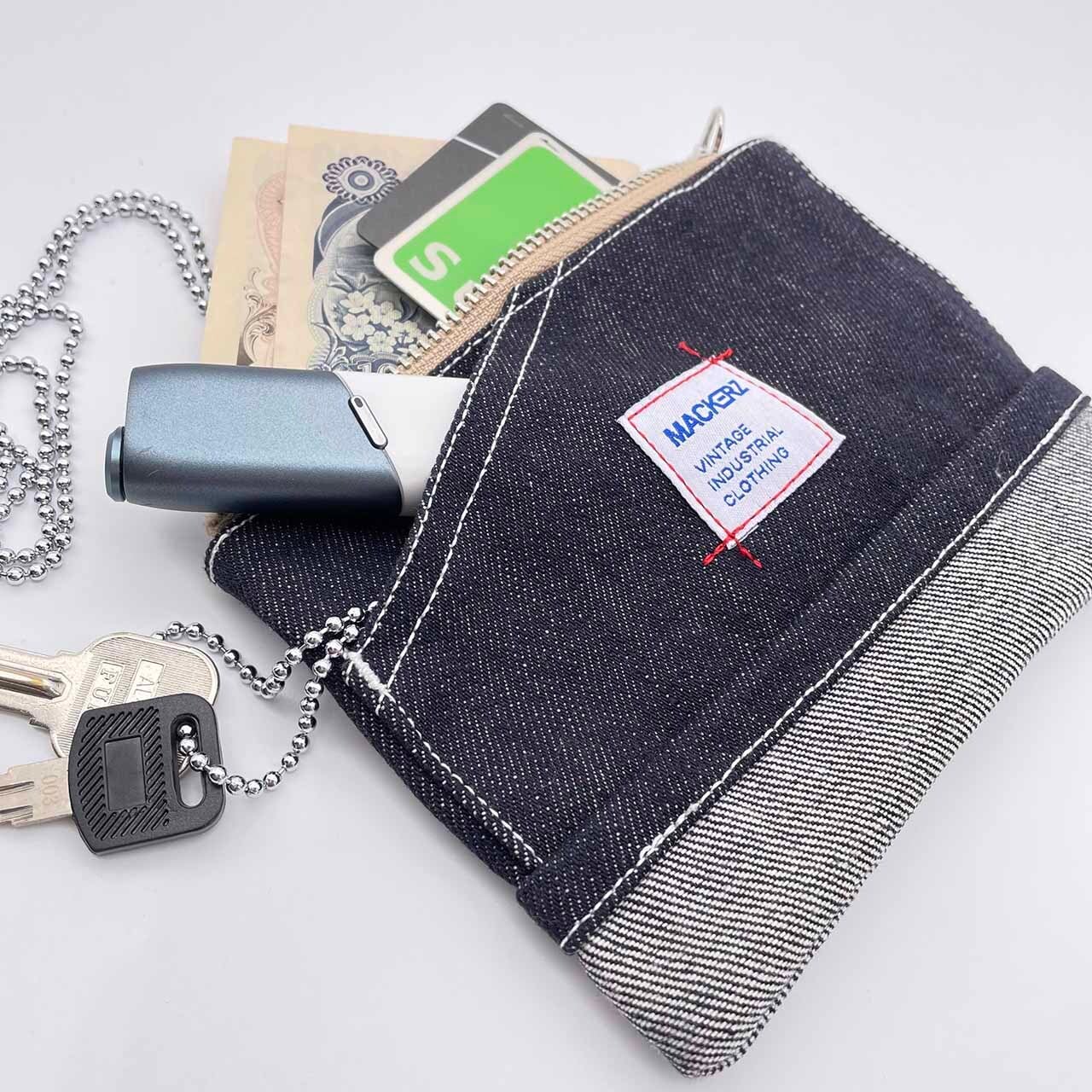 MACKERZの定番ネックウォレットです。デニムパンツのロールアップをモチーフにしたデザイン。ワンマイル程度のお出かけなら、現金やカード、電子タバコ等が収納できるので、これ一つで十分です。鍵もストラップに取り付けられ、ウォレットの外ポケットに収納できるので安心。送料は無料です。