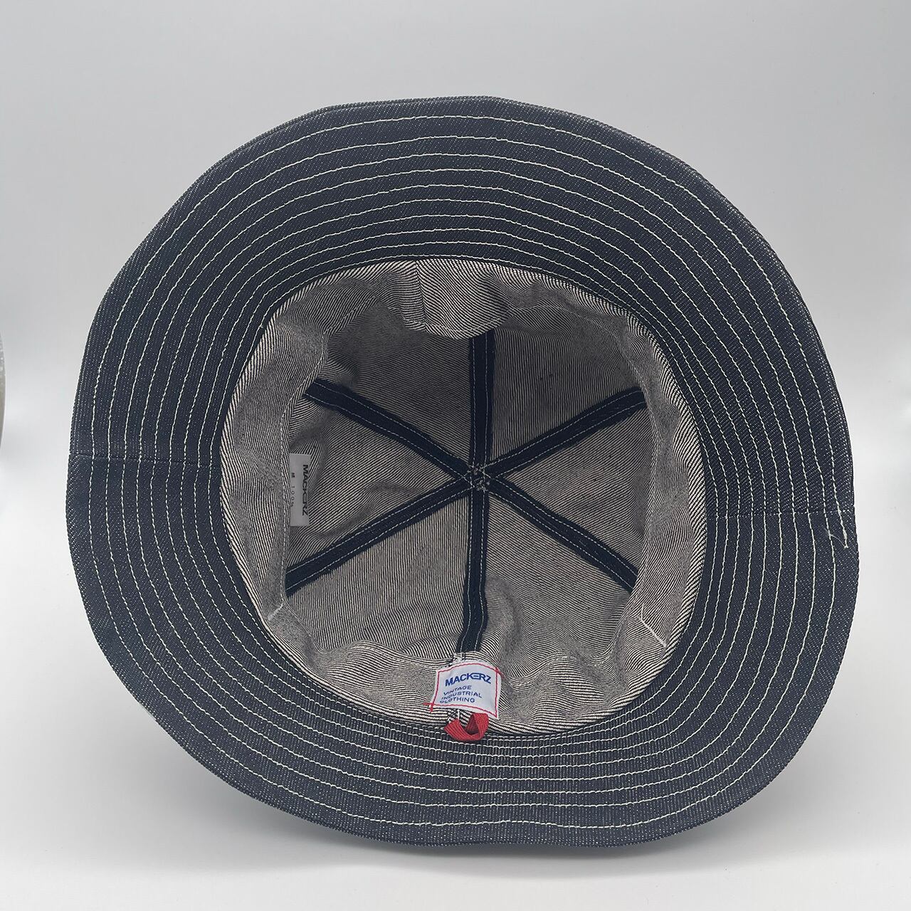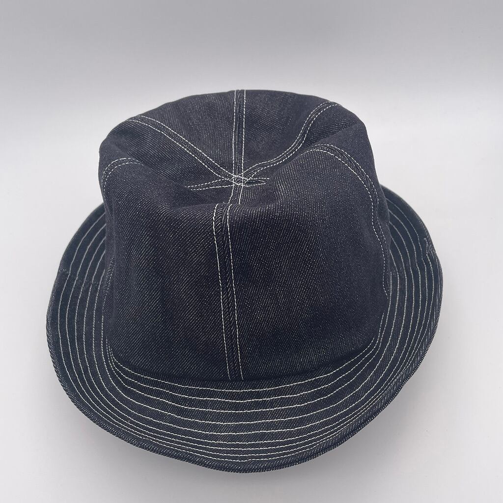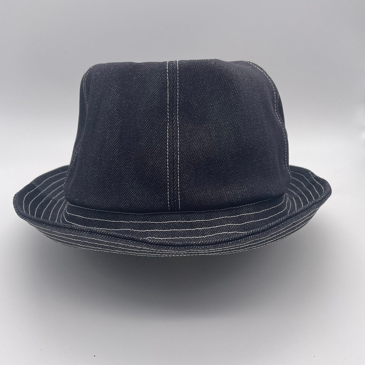 ビッグサイズ(64cm)のバケットハットです。つばを上げたり下げたり、クラウンをへこませたり、色々アレンジして楽しんで頂きたい。バックルストラップ付きのため、サイズを縮小する事が可能。素材はしっかりした13ozの岡山デニム、使い込んだらヴィンテージ感が出る商品です。